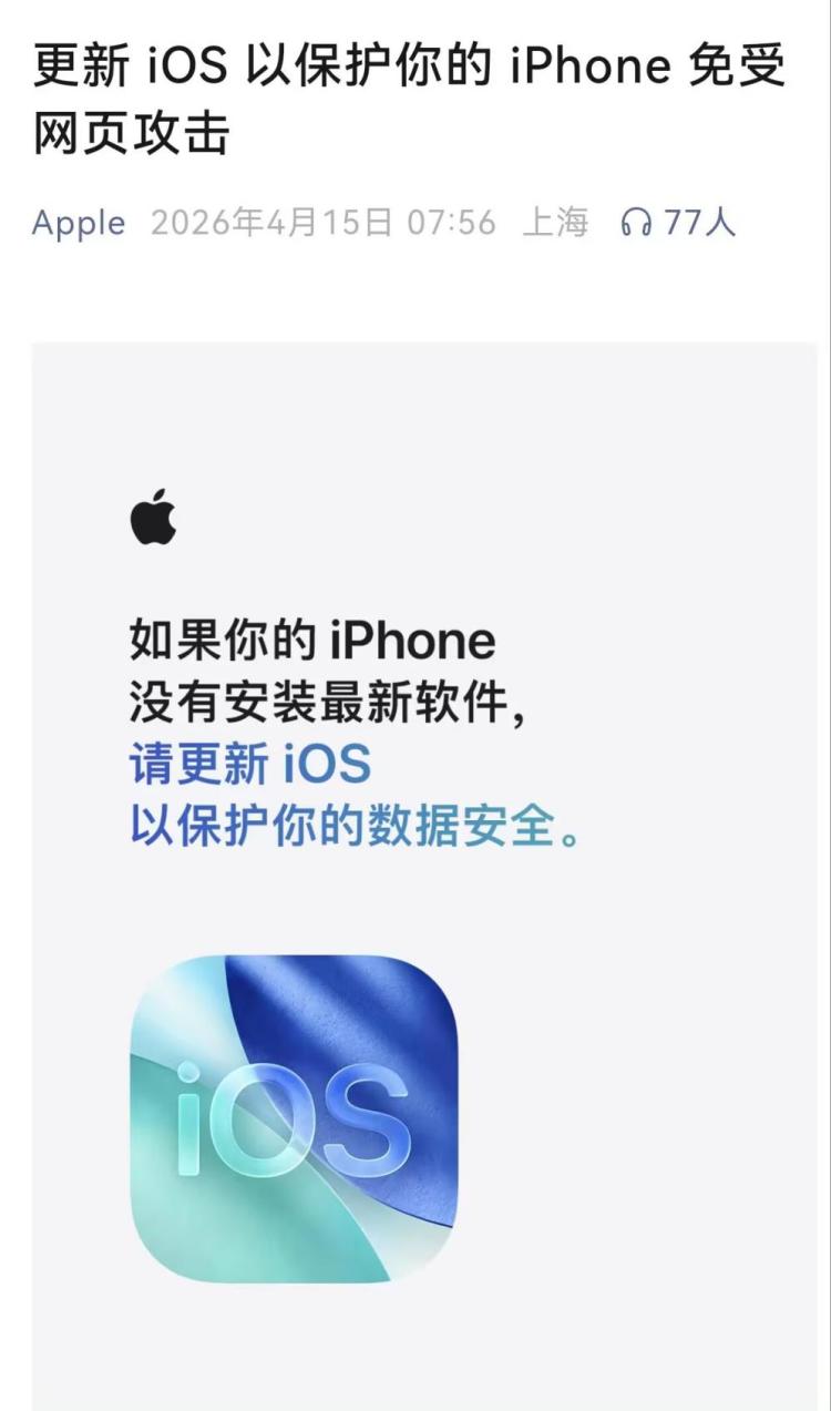 苹果公司在官方微信中建议,保持系统为最新版本是保护设备安全最关键的措施。已更新至最新iOS版本的用户已自动受到保护。对于无法升级至最新系统的旧设备,苹果公司已于2026年3月11日发布了针对iOS 15与iOS 16的专项安全更新,以扩展保护范围。