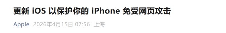 【环球网科技综合报道】4月15日,苹果官微发文称“如果你的iPhone没有安装最新软件,请更新iOS以保护你的数据安全”。