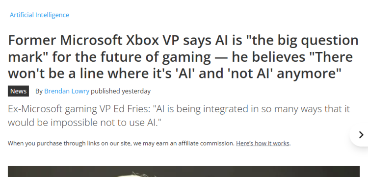 【环球网科技综合报道】4月11日消息,据windowscentral报道,微软前 Xbox 副总裁艾德·弗里斯近日表示,人工智能在影响游戏玩法和设计方面“还有更大的潜力”。