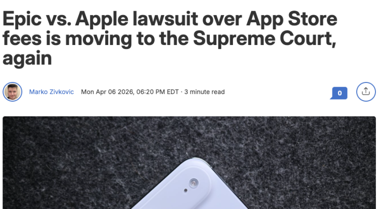 【环球网科技综合报道】4月7日消息,据Appleinsider报道,苹果与Epic Games之间围绕App Store费用的法律争端持续发酵,双方各执一词,而美国最高法院即将成为这场激烈博弈的关键裁决者。
