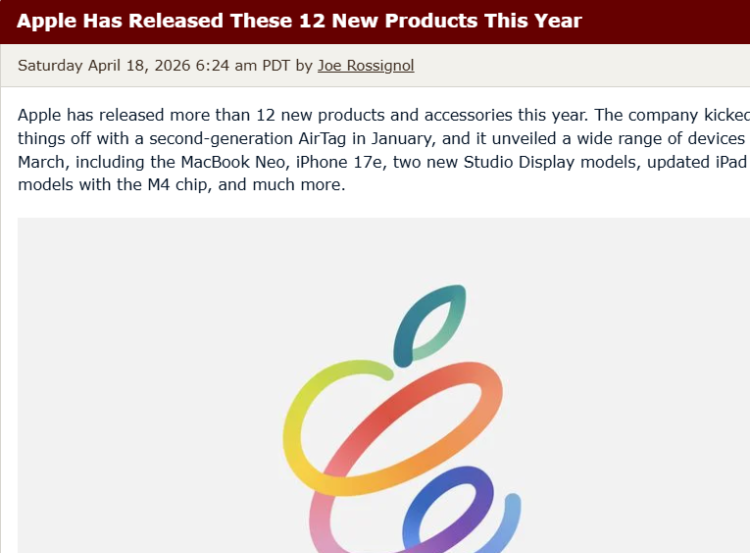 【环球网科技综合报道】4月19日,据外媒macrumors报道,2026年截至目前,苹果已密集发布12款新产品及配件,从1月的第二代AirTag起步,3月迎来爆发式更新,涵盖手机、电脑、显示器、耳机等全产品线,多款机型搭载全新芯片与核心功能,兼顾高端升级与亲民定位。