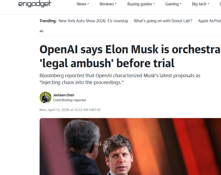 【环球网科技综合报道】4月13日,据瘾科技报道,OpenAI与特斯拉CEO埃隆·马斯克的法律大战临近开庭,双方矛盾再度升级。OpenAI近日正式指控马斯克在庭审前夕突袭性变更诉讼请求,通过临时修改诉讼请求扰乱程序,并称相关诉求缺乏法律与事实依据。
