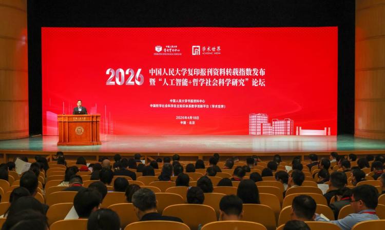 【环球网科技综合报道】4月18日,由中国人民大学书报资料中心、中国哲学社会科学自主知识体系数字创新平台(学术世界)主办的“2026年中国人民大学复印报刊资料转载指数发布暨‘人工智能+哲学社会科学研究’论坛”在中国人民大学举行。