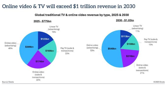 Omdia分析称,数据凸显了媒体和娱乐行业的重大结构性转变,总收入预计将从2025年的7750亿美元增至2030年的1.03万亿美元,增长主要由数字形式的业务驱动,尤其是广告业务。