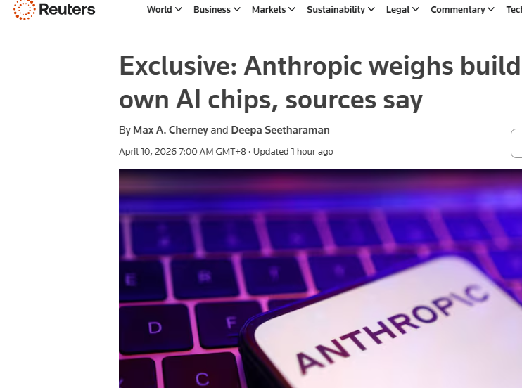 【环球网科技综合报道】4月10日消息,据路透社援引三位知情人士透露,人工智能实验室Anthropic正探索设计自有AI芯片,以此应对当前AI芯片短缺的行业困境,不过该计划目前仍处于早期阶段,尚未最终确定。